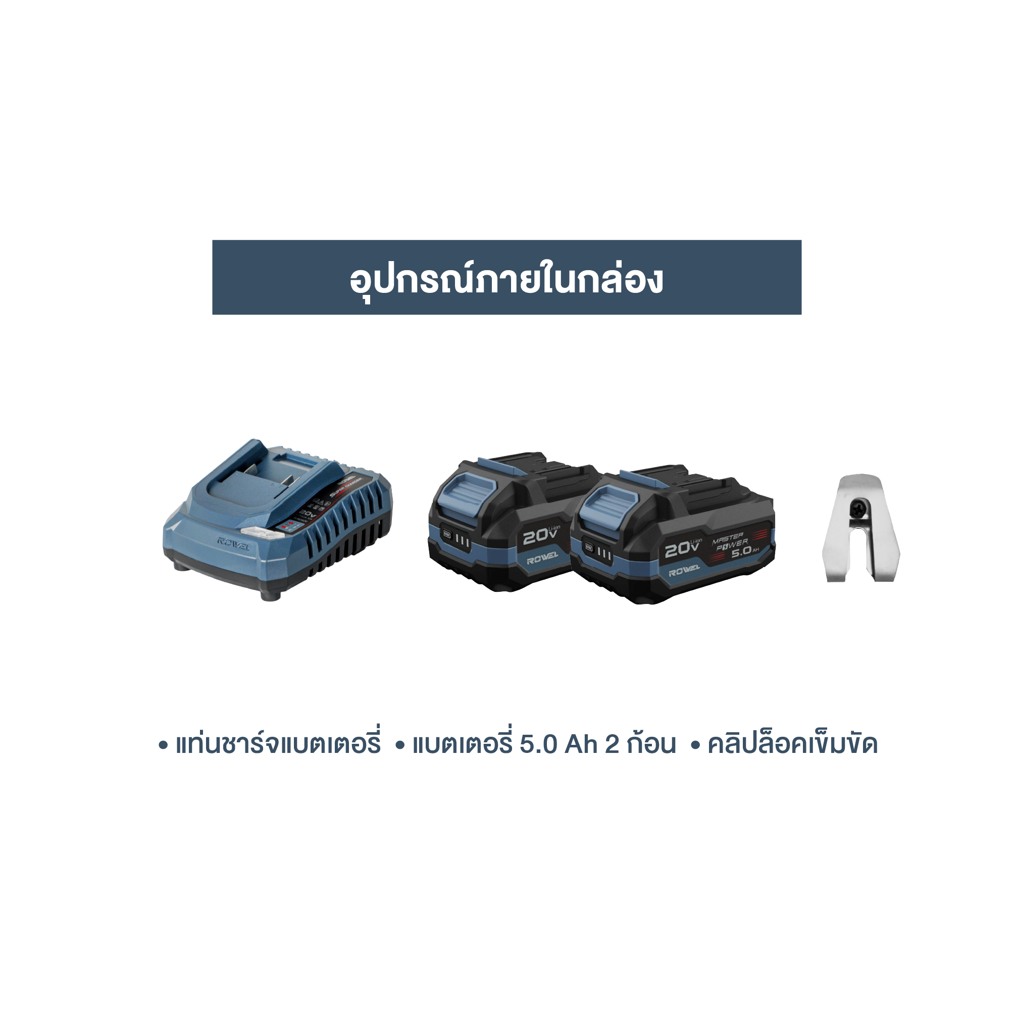 บล็อคกระแทกไร้สาย 20V 600Nm. RX serie พร้อม แบตเตอรี่ 5.0 Ah x 2 Rowel รุ่น DIW600RX