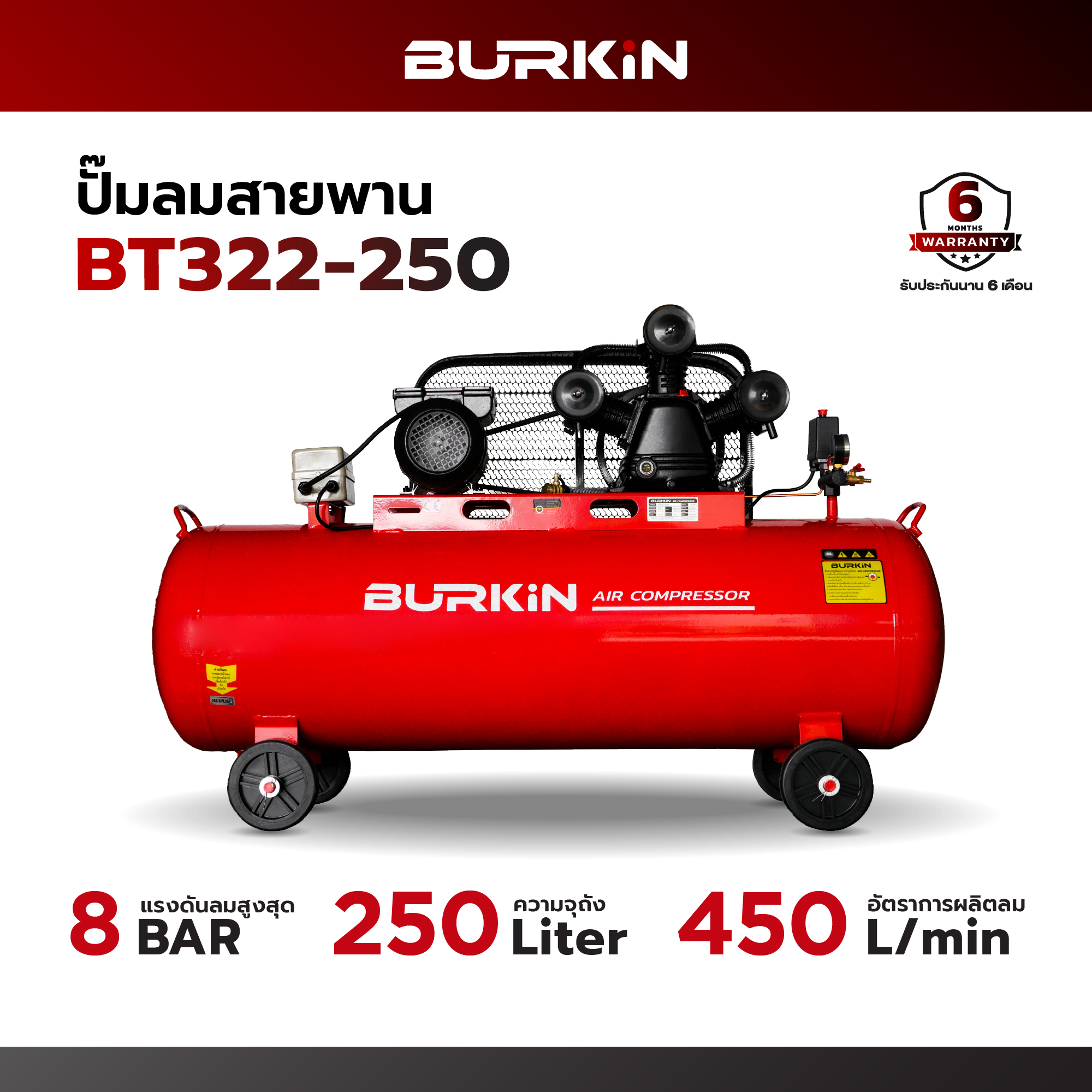ปั๊มลมสายพาน BURKIN ขนาดถัง 250 ลิตร รุ่น BK-BT322-250