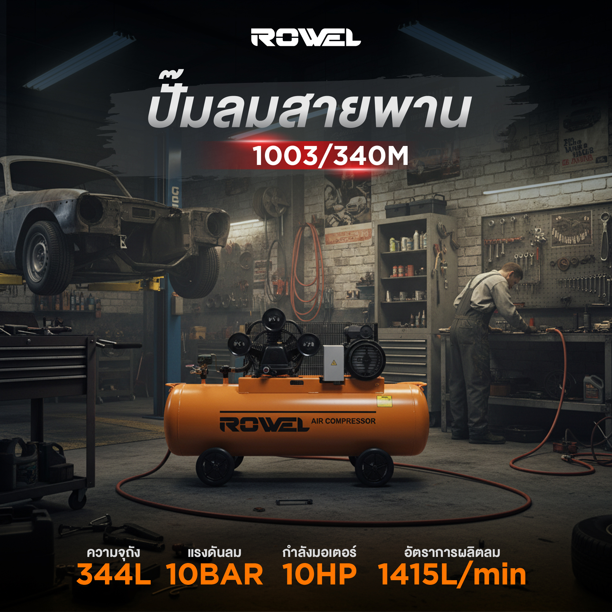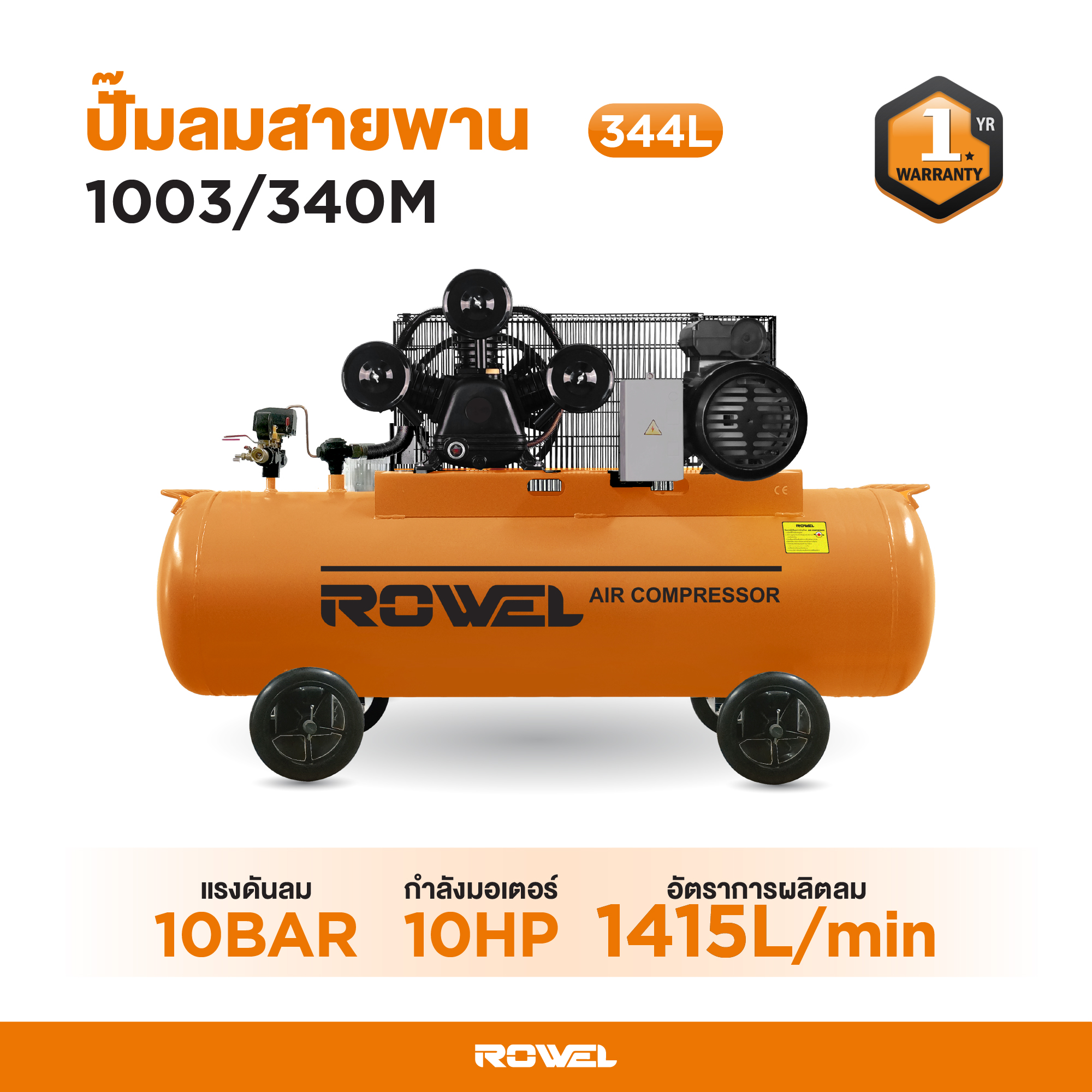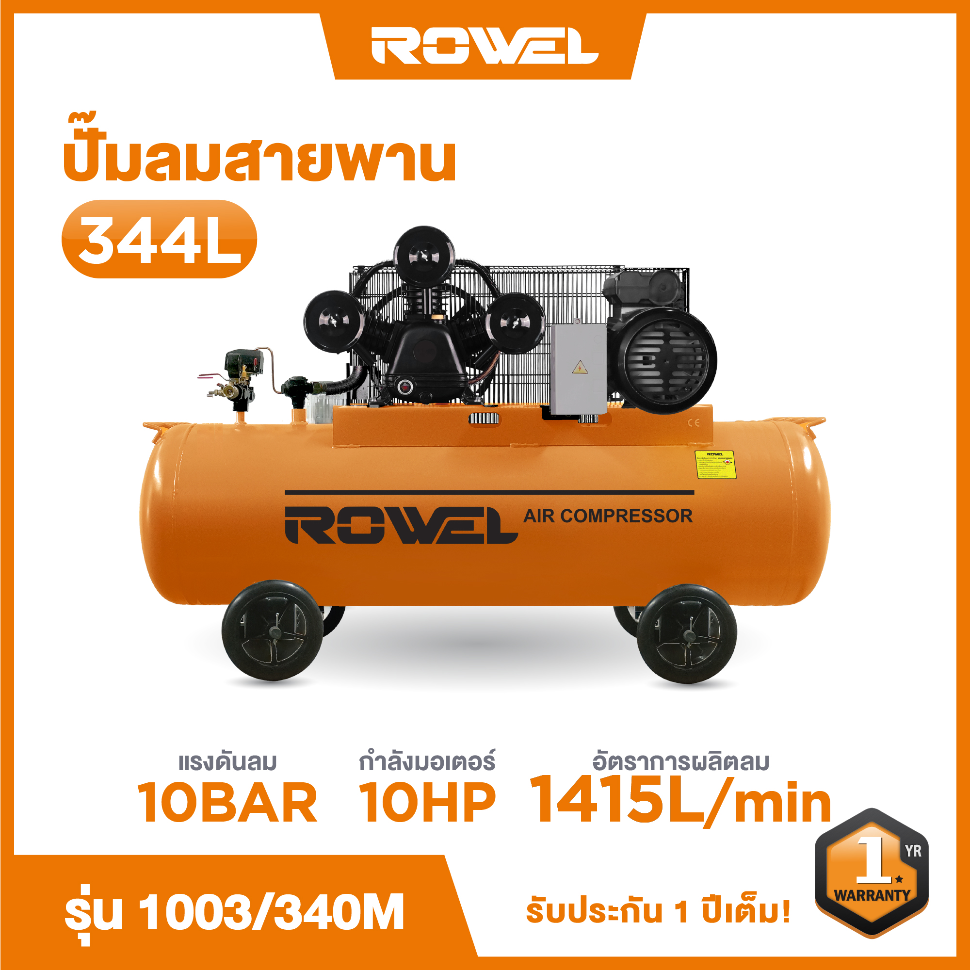 ปั๊มลม ROWEL 7.5HP. 340L (3 ลูกสูบ) รุ่น RW-1003/340
