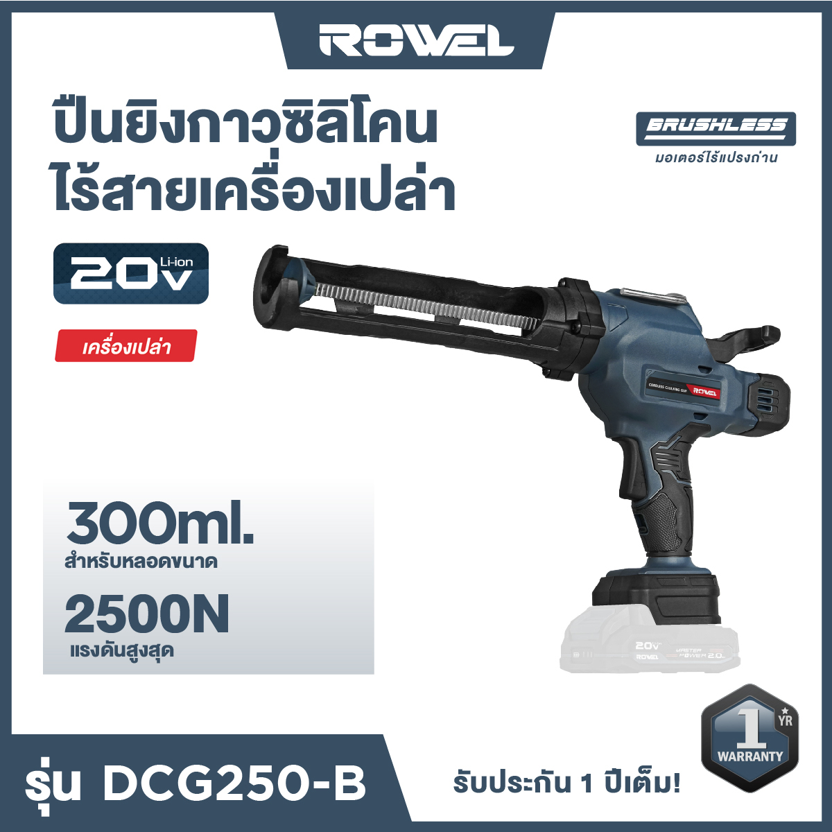 “ปืนยิงกาวซิลิโคนไร้สาย 20V รุ่น DCG250-B (เครื่องเปล่า) รุ่น DCG250-B